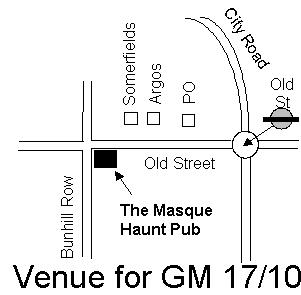 Islington General Meeting Time: 4:30 - 6pm Date: Thursday 17th October 2002 Venue: Masque Haunt Public House, Old Street EC1 (near the tube) refreshments will of course be provided |